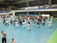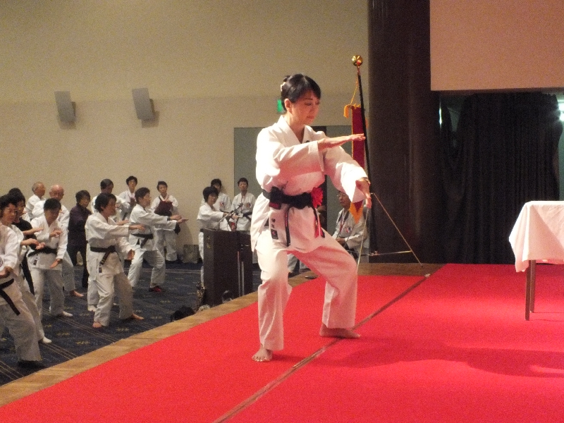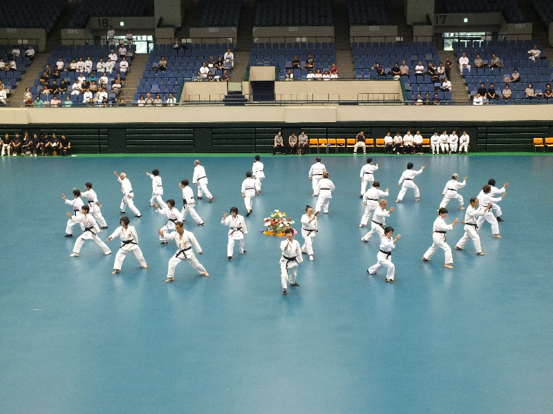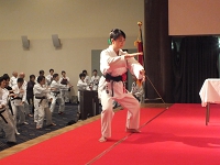 2日目の朝は早朝稽古。全体稽古の後、65名の方の師範審査が2組に分かれて行われました。そして、慧先生と新師範で記念の演舞が行われました。