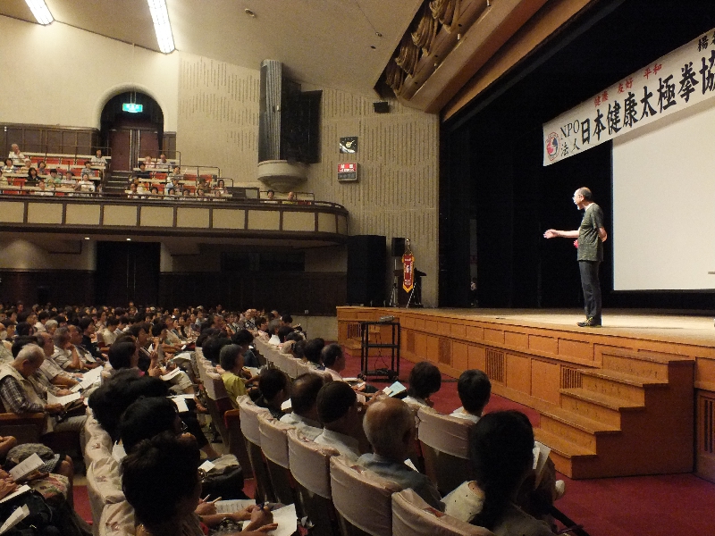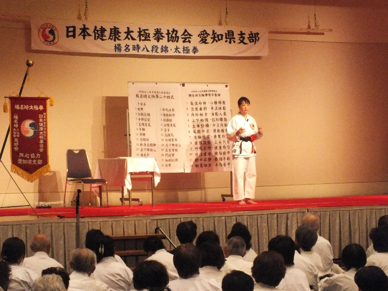 9月1日(日)午後1時30分より名古屋市公会堂にて、楊進理事長をお迎えして講習会が開催されました。今回は、千名を超える参加者がありました。太極拳の古典である「陰陽訣」の解説をしていただき、日頃は気づかいないことについての視野を広めるお話が聞けました。