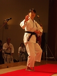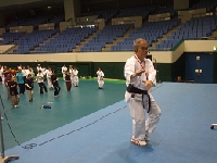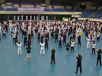 午前は、自分達で考え勉強するという主旨から、参加者の中からその場で選ばれた6人が、壇上で太極拳の十式から十七式を演舞し、アドバイザーから意見を頂き研修しました。