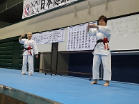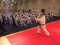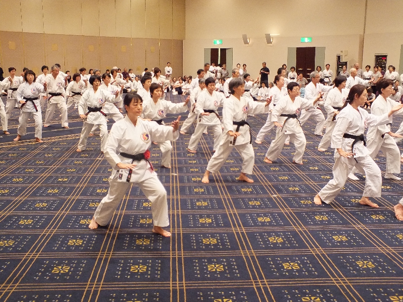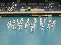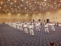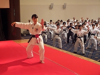 2日目の朝は早朝稽古。全体稽古の後、65名の方の師範審査が2組に分かれて行われました。そして、慧先生と新師範で記念の演舞が行われました。
