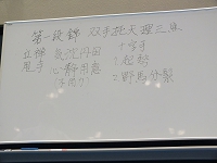 午後の研修では、教室で指導する時の、1週目の指導事項、2週目の指導事項・・・という手順で、楊名時先生のお言葉を交えながら丁寧に指導していただきました。参加者の真剣な様子が印象に残りました。