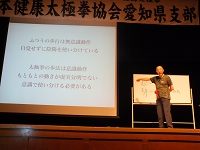 9月1日(日)午後1時30分より名古屋市公会堂にて、楊進理事長をお迎えして講習会が開催されました。今回は、千名を超える参加者がありました。太極拳の古典である「陰陽訣」の解説をしていただき、日頃は気づかいないことについての視野を広めるお話が聞けました。