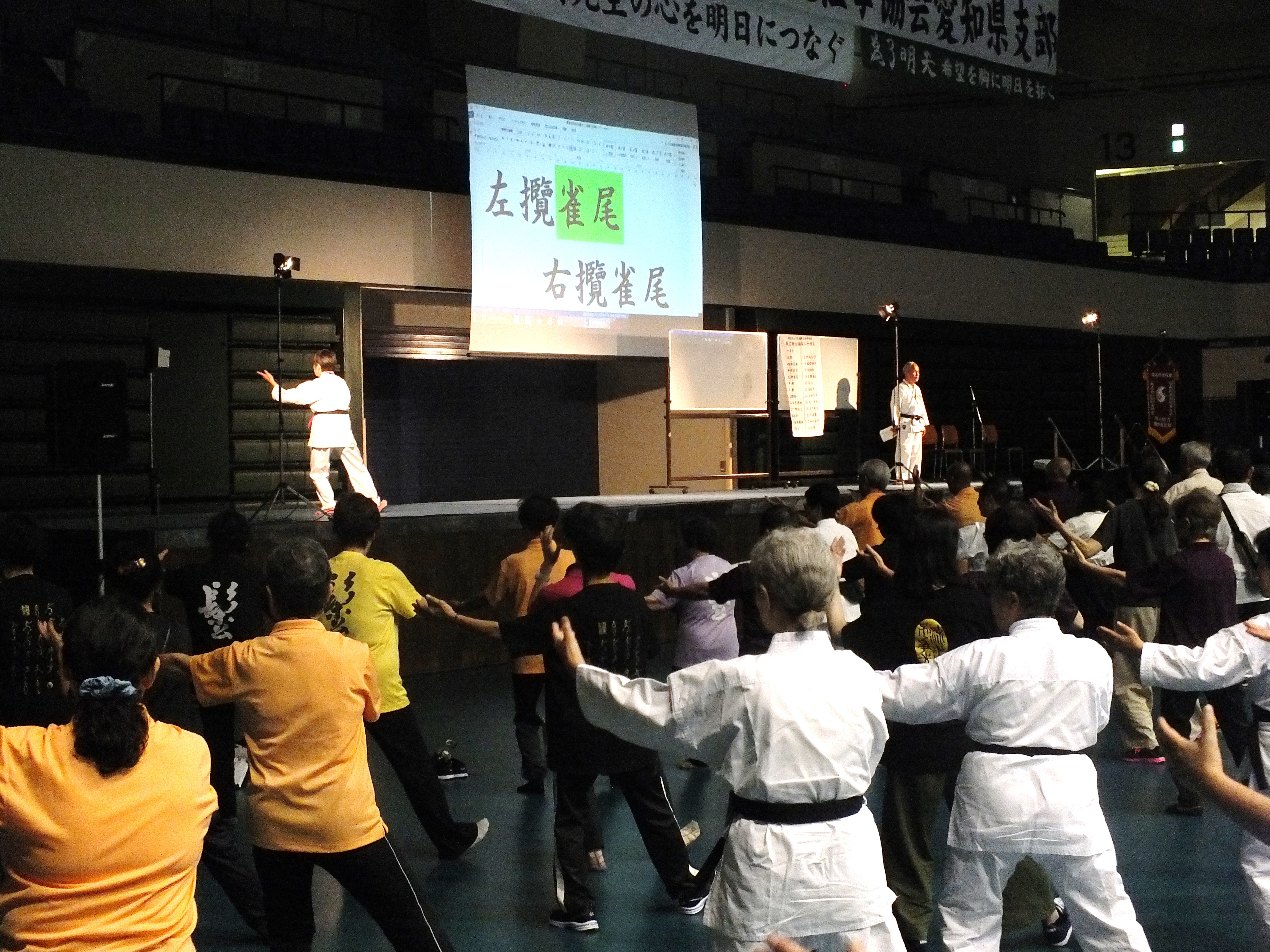 理事長講習会が、5月27日(月)午後1時30分より日本特殊陶業市民会館ビレッジホールにおいて、支部会員624名の参加で開催されました。昨年の理事長講習会で行われた、楊名時太極拳の基本動作「間違いに陥りやすいポイント」のアンケート結果から、分かりづらかった箇所を解説していただきました。